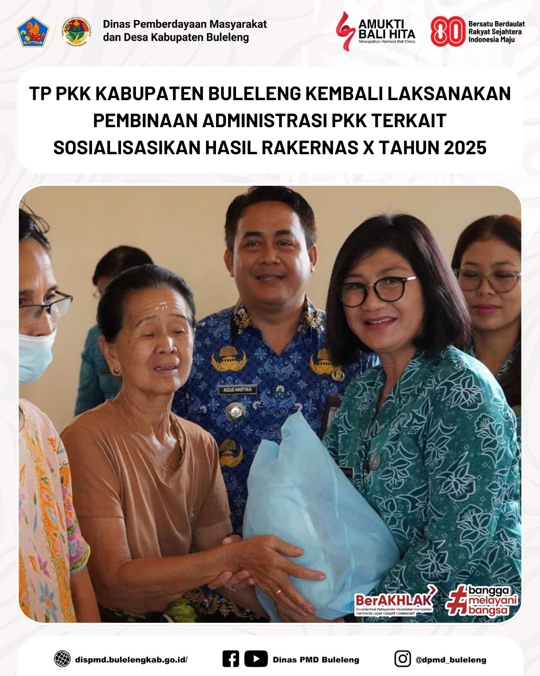 Buleleng, 18 Desember 2025 - TP PKK Kabupaten Buleleng melaksanakan kegiatan Pembinaan Administrasi PKK sebagai tindak lanjut hasil Rapat Kerja Nasional (Rakernas) X Tahun 2025. Kegiatan ini dilaksanakan secara berkelanjutan sejak hari Senin, 15 Desember 2025, dan untuk hari rabu (17/12) kemarin dilaksanakan di Desa Julah Kecamatan Tejakula dan Desa Bila Kecamatan Kubutambahan, serta hari ini, Kamis (18/12) di Desa Giri Emas Kecamatan Sawan dan Desa Kayu Putih Kecamatan Sukasada.