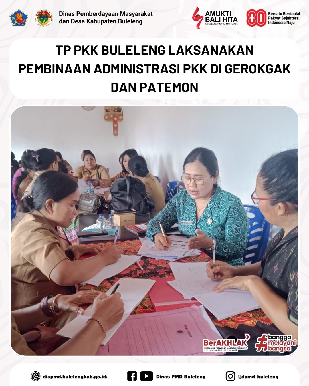 Buleleng, 15 Desember 2025 - Tim Penggerak PKK Kabupaten Buleleng melaksanakan kegiatan Pembinaan Administrasi PKK pada Senin (15/12) kemarin, bertempat di Desa Gerokgak, Kecamatan Gerokgak dan Desa Patemon, Kecamatan Seririt. Kegiatan ini dilaksanakan sebagai tindak lanjut hasil Rapat Kerja Nasional (Rakernas) X Tahun 2025 yang menjadi pedoman baru dalam sistem pelaporan kegiatan PKK dari tingkat desa hingga pusat.