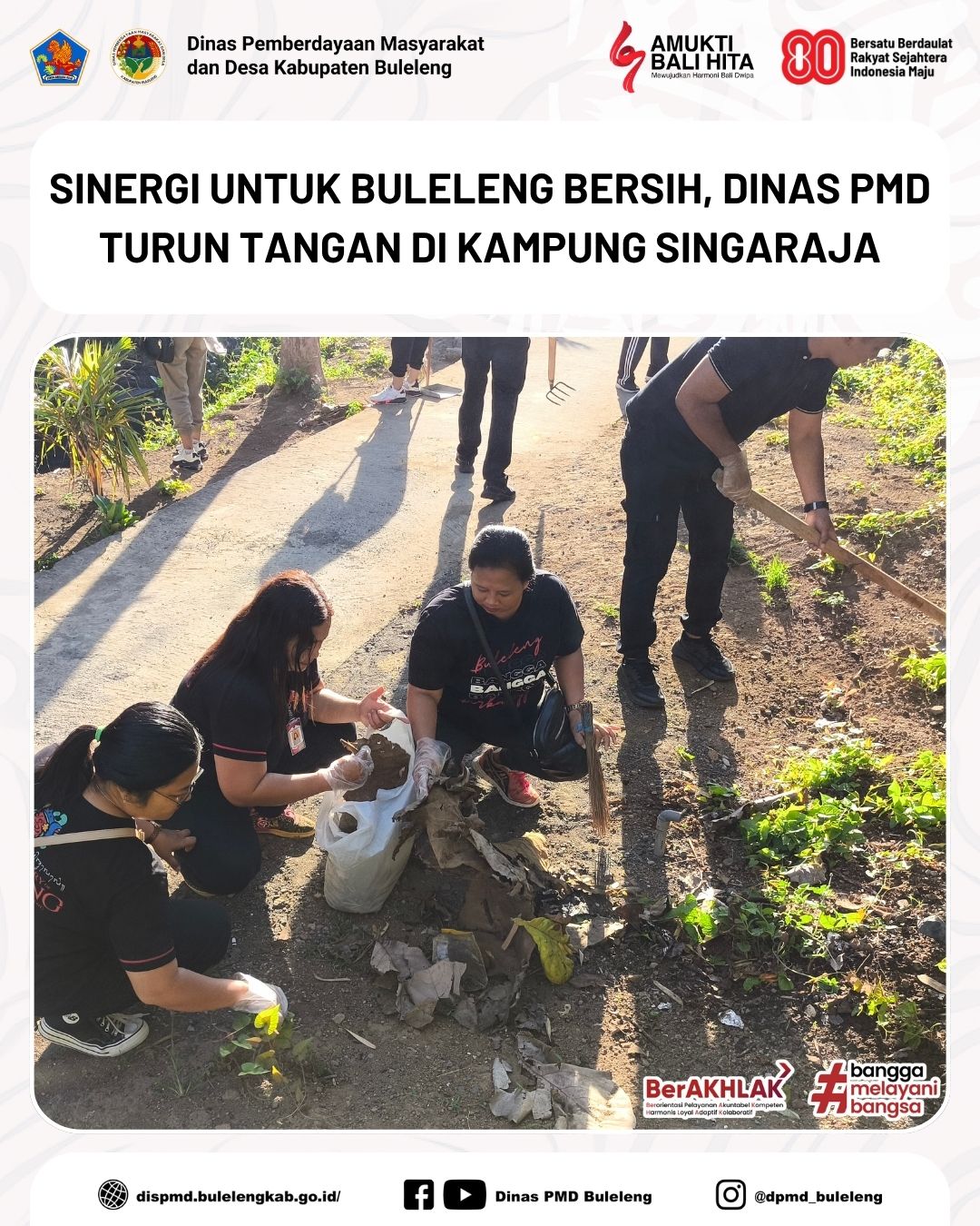Buleleng, 7 November 2025 - Dalam rangka menindaklanjuti Surat Bupati Buleleng tentang Gerakan Buleleng Bersih Sampah sebagai wujud implementasi kebijakan pengelolaan sampah berbasis sumber, Dinas Pemberdayaan Masyarakat dan Desa (PMD) Kabupaten Buleleng kembali menunjukkan komitmennya terhadap kebersihan dan kelestarian lingkungan melalui aksi nyata.