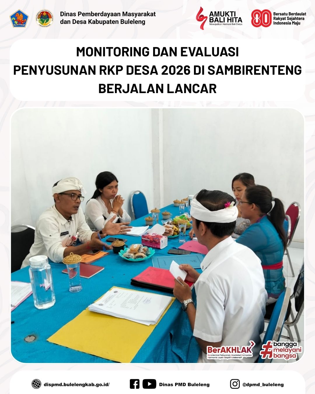 Buleleng, 22 September 2025 - Dinas Pemberdayaan Masyarakat dan Desa (PMD) Kabupaten Buleleng melalui Bidang Pemerintahan Desa melaksanakan kegiatan Monitoring dan Evaluasi (Monev) Penyusunan Rencana Kerja Pemerintah (RKP) Desa tahun 2026 serta Profil Desa di Desa Sambirenteng, Kecamatan Tejakula.