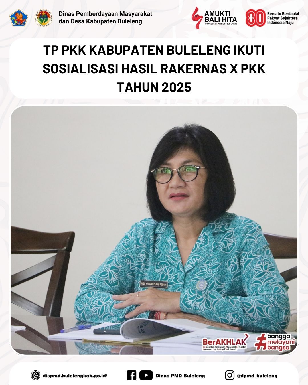Buleleng, 11 November 2025 - Dinas Pemberdayaan Masyarakat dan Desa (PMD) Kabupaten Buleleng bersama Tim Penggerak (TP) PKK Kabupaten Buleleng mengikuti kegiatan Sosialisasi Hasil Rapat Kerja Nasional (RAKERNAS) X PKK Tahun 2025 yang diselenggarakan oleh TP PKK Pusat secara daring melalui Zoom Meeting.