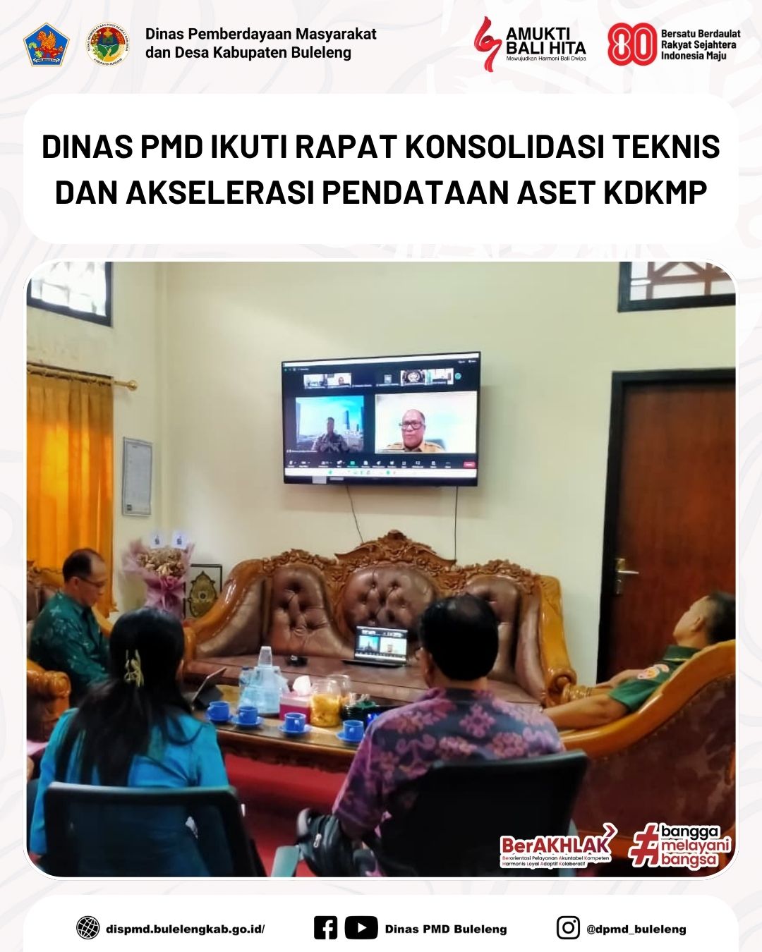 Buleleng, 11 November 2025 - Dinas Pemberdayaan Masyarakat dan Desa (PMD) Kabupaten Buleleng berpartisipasi dalam Rapat Lanjutan Konsolidasi Teknis dan Akselerasi Pendataan Bahan untuk Pembangunan Fisik, Gerai, Pergudangan, dan Kelengkapan Koperasi Desa/Kelurahan Merah Putih (KDKMP) yang dilaksanakan secara daring dari ruang Kepala Dinas Perdagangan, Perindustrian, Koperasi, dan UKM (Dagperinkop UKM) Kabupaten Buleleng.