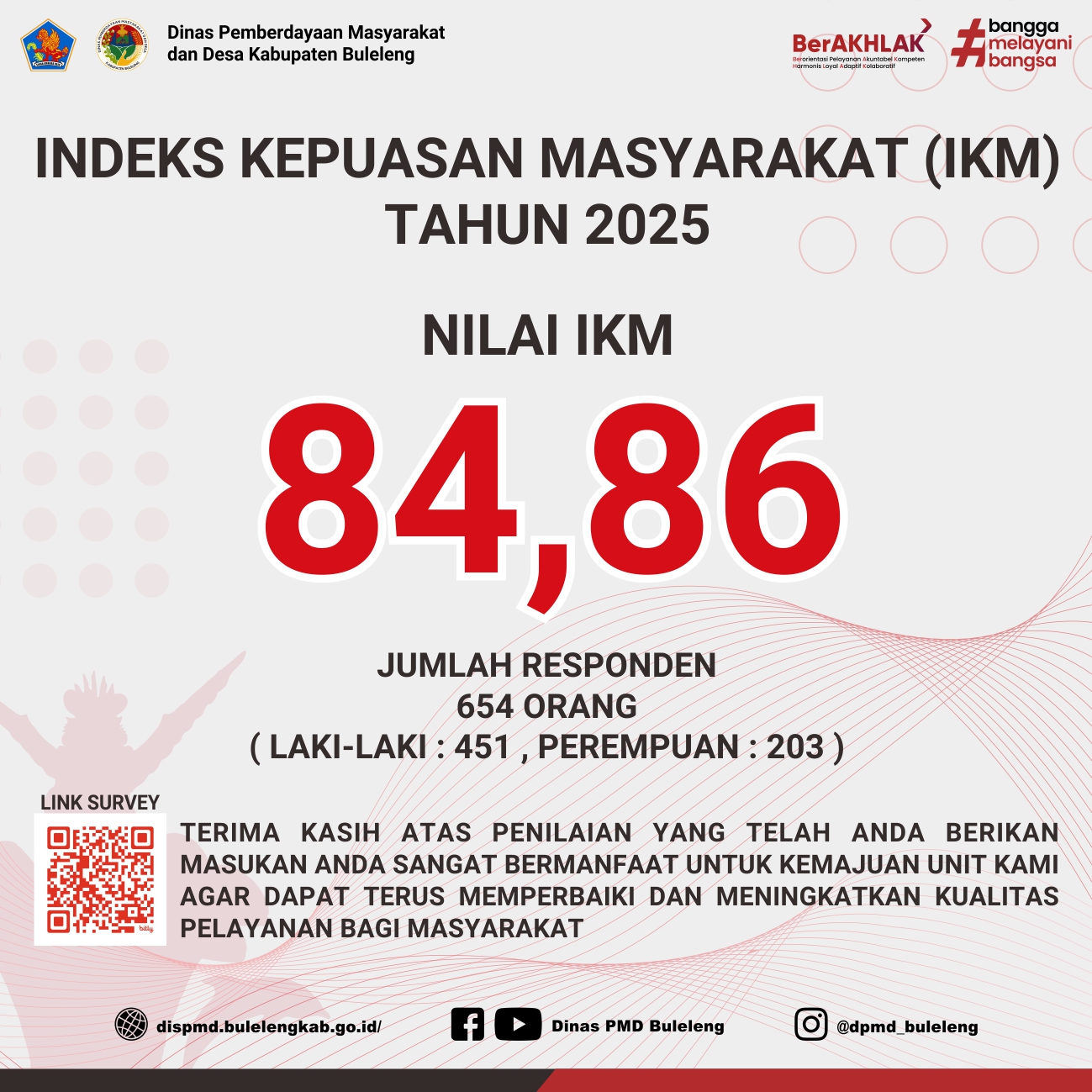 Indeks Kepuasan Masyarakat Dinas Pemberdayaan Masyarakat dan Desa Kabupaten Buleleng.Laporan Survei Kepuasan Masyarakat dapat dilihat pada tautan dibawah ini :